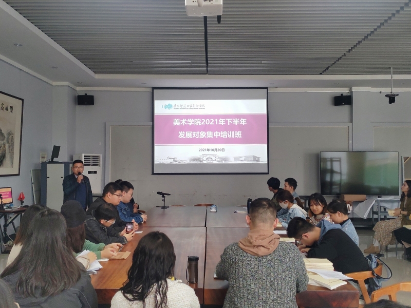 为全面贯彻新时代党的建设总要求和新时代党的组织路线,认真做好入党教育培训工作,提高发展党员质量,美术学院近期举办了发展对象集中培训班。培训班主要针对2021年下半年确定的发展对象,培训方式分为4个模块,即集中授课、影像教学、主题研讨、集中自学。