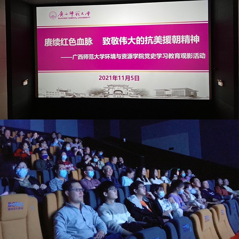 英雄虽逝,精神永存,伟大的抗美援朝精神历久弥新!伟大的中国人民志愿军烈士永垂不朽!此次观影活动,既是一堂生动的爱国主义教育,也是一次记忆犹新的党史学习教育,学院师生党员在思想上接受了一次深刻的党性教育和精神洗礼。下一步,环境与资源学院将继续坚持把党史学习教育放在突出位置,持续有效加强党史学习教育,凝心聚力确保党史学习教育见实效。