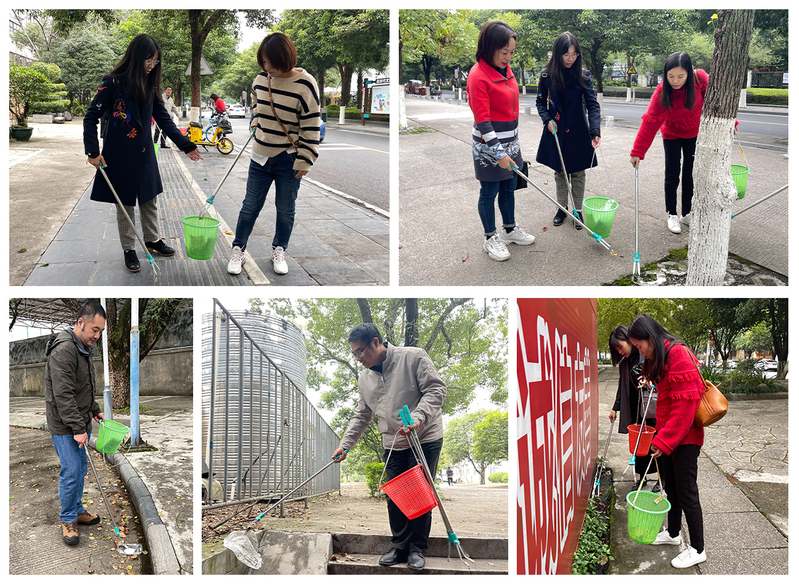 在活动中,党员们不怕脏,不怕累,手持垃圾钳、垃圾筐等工具,徒步经过育才校区主干道、南门,育才路等,捡拾绿化带及道路两旁的烟头、果皮、塑料袋等垃圾。大家干劲十足,认真细致地检查每处地方,不放过任何一个烟头纸屑。树下、路面缝隙里是烟头聚集的重灾区,在树下一个不到一平米的区域内,党员们就在草丛里清理出十几个烟头。不到半个小时,每个人的垃圾筐中都已“战果累累”,清洁区域也焕然一新。