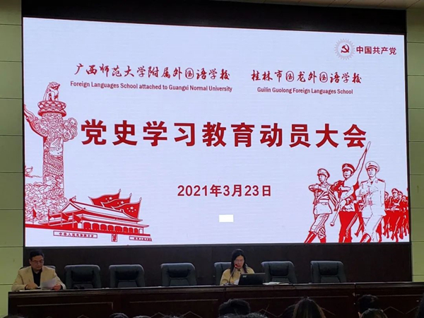 3月23日,附属外国语学校党委召开全体党员大会,主题是全体党员进行党史学习教育动员。会议由校党委宣传委员、国龙外校副校长同志主持。
