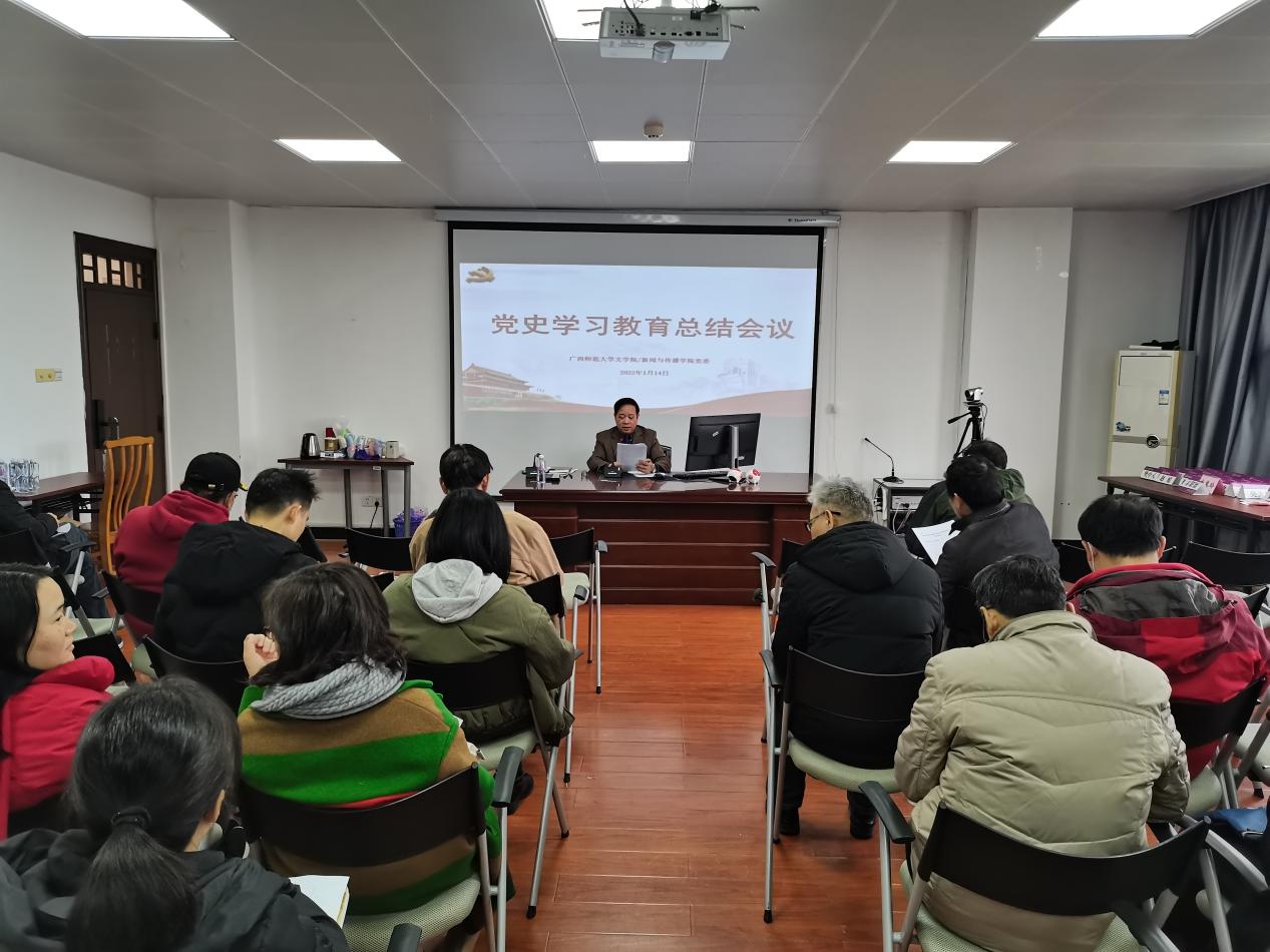 为持续提升党史学习教育成效,文学院/新闻与传播学院党委于1月14日在育才校区文二楼810会议室召开党史学习教育总结会议。会议深入学习贯彻习近平总书记关于党史学习教育重要指示精神,认真贯彻落实中央、自治区党委、自治区教育系统和学校党史学习教育总结会议精神,全面总结学院党史学习教育的成效和经验,对巩固拓展党史学习教育成果进行部署,推动党史学习教育常态化和长效化,不断从党的百年奋斗光辉历程中汲取继续前进的智慧和力量,奋力谱写学院高质量发展新的篇章,以优异成绩迎接党的二十大胜利召开。学院党委负责人对学院党史学习教育做了总结,会议由学院纪委负责人主持,学院党政班子成员及全院教工党员参加了会议。