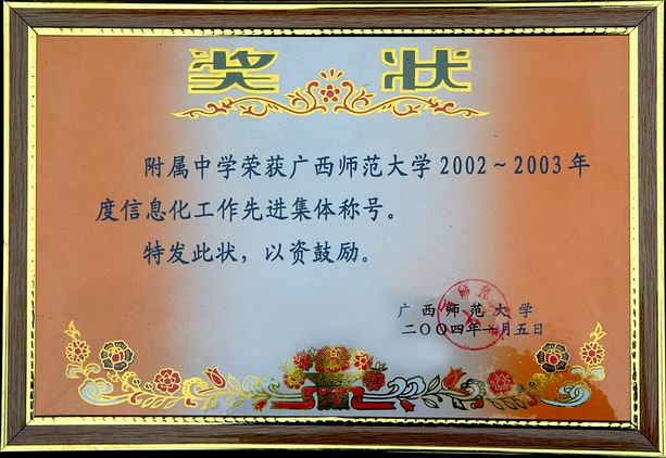 热烈庆祝我校获得广西师范大学2002-2003年度信息化工作先进集体