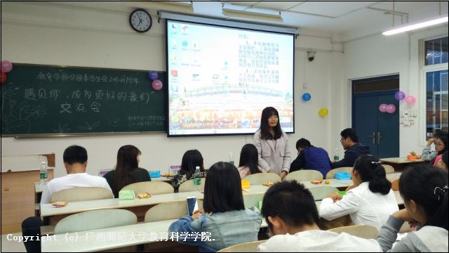 为了加强会干及助理之间的感情并使接下来的工作更加顺利,教育学部分团委学生会于10月29日晚7点10分在雁山校区文一区举行了主题为“遇见你,成为更好的我们”的会干助理交流会。出席活动的嘉宾有前任学生会主席团所有成员主席及本届主席团全体成员。教育学部分团委学生会会干及助理共计100余人出席了本次活动。