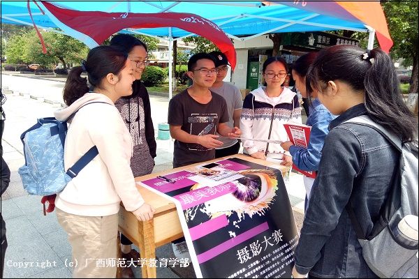 为展现广大一线教师奋发图强,言传身教的精神风貌,培养师大学生师范生的使命感,进一步加强校园文化建设,营造校园艺术氛围,教育学部框架摄影协会特举办以“展教书风采,颂育人美德”为主题的摄影大赛。此次摄影大赛报名开始时间是2018年4月24日,以教师工作的不易为背景,以寻找教师教学场景、工作环境、社会活动中为人师表、兢兢业业、寓教于乐、和蔼可亲的品质为中心,以让大学生感恩教师为目的进行推广。