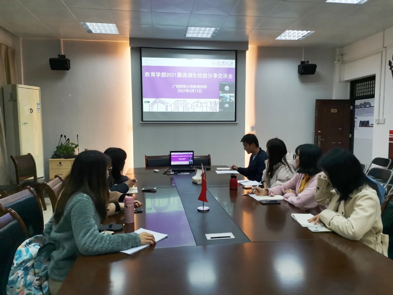 为进一步增强选调生备考信心,提高冲刺复习效率,2021年3月13日晚上,教育学部在起文楼345办公室召开了2021届选调生经验分享交流会。会议邀请了2019届教育技术学专业研究生梁宇柯、2020届现代教育技术专业研究生向丽华、2020届公共事业管理专业本科生苏颖琦为大家分享备考经验。会议由毕业班辅导员主持,2021届报考选调生的本科生和研究生通过线上线下相结合的方式参与。
