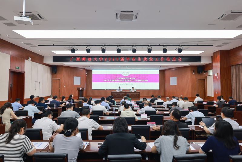 为深入学习贯彻习近平总书记关于做好高校毕业生就业工作的重要指示批示精神,全面贯彻党中央、国务院决策部署,全力以赴推动2025届毕业生更高质量充分就业,5月22日下午,广西师范大学在育才校区国教中心2号楼201报告厅召开2025届毕业生就业工作推进会。校党委副书记、校长孙杰远,各职能部门主要负责人、各学院(部)党委书记、院(部)长、分管学生工作的党委副书记及就业工作相关人员参会。会议由校党委常委、副校长沈星灿主持。