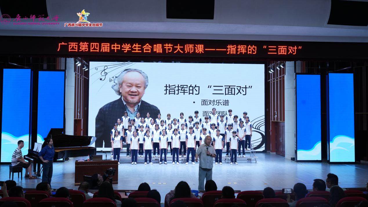 本次活动不仅注重舞台展示,更着力于艺术素养的培育。我校精心策划,周密组织,邀请中国音乐学院许知俊教授、广西艺术学院华山教授进行合唱大师课现场教学,分别从指挥技法、作品处理、排演要领等方面与师生们进行了深入交流和指导,有效提升了参演师生的专业水平和审美能力。