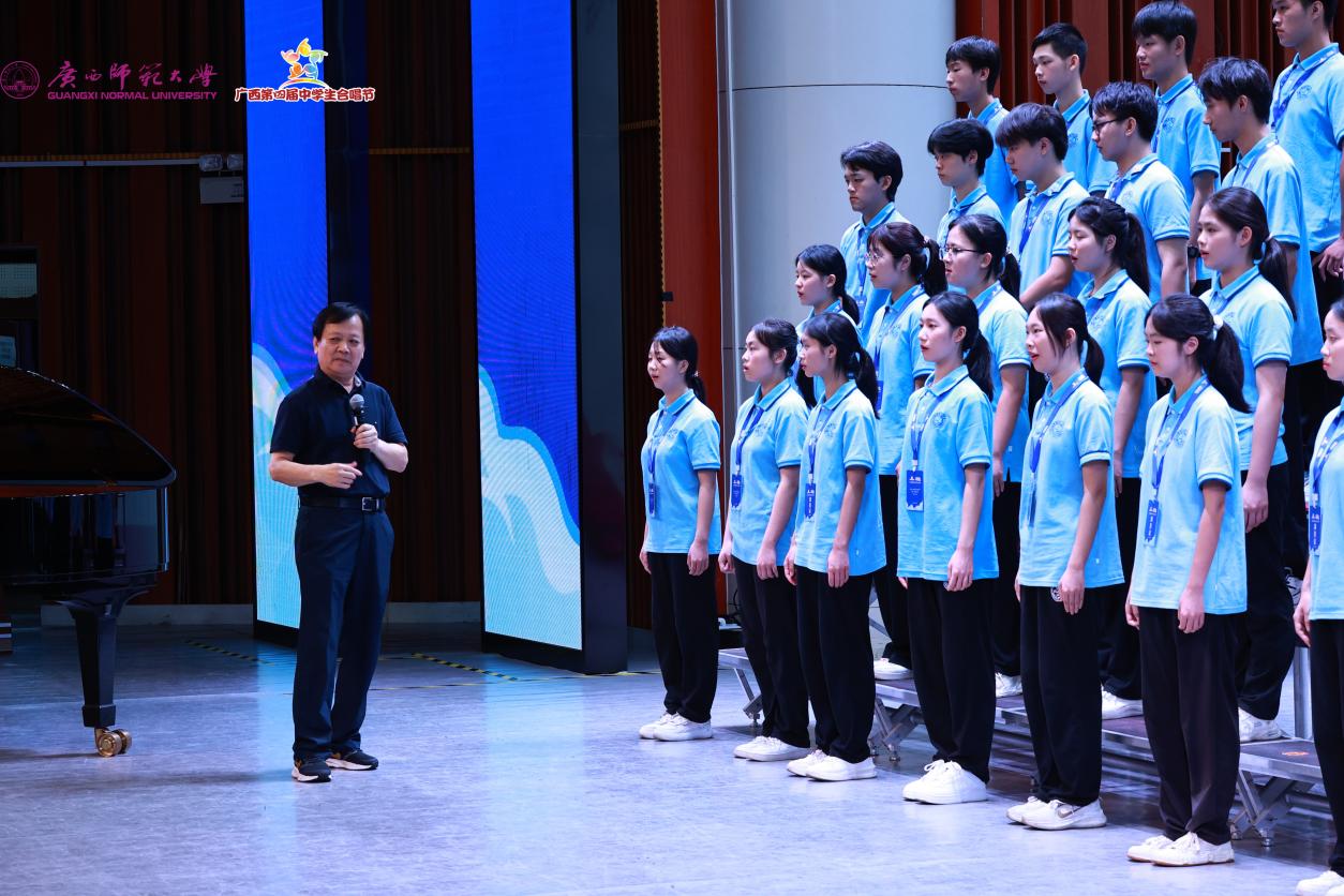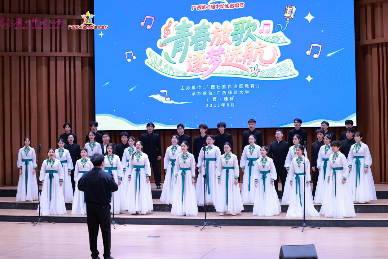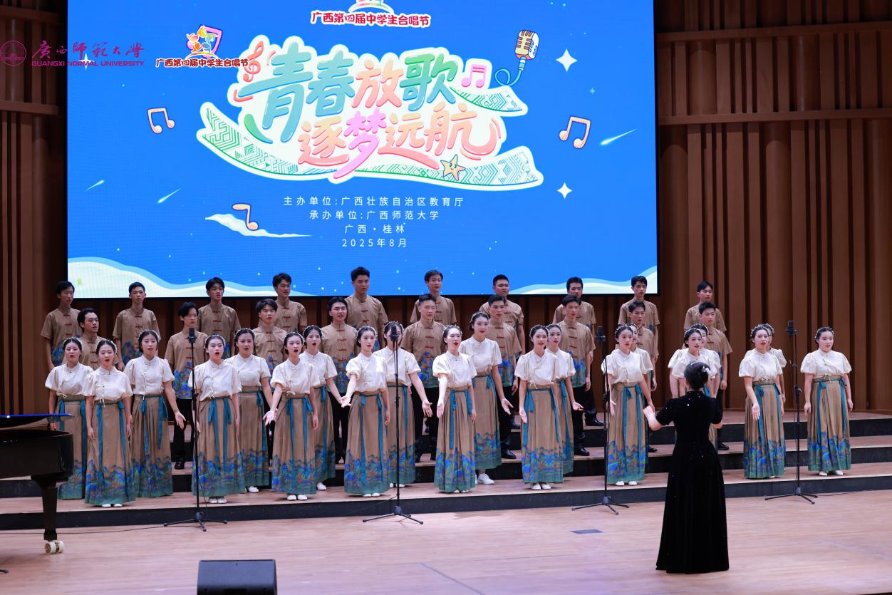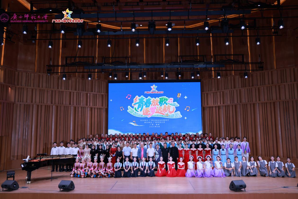 8月25日,由自治区教育厅主办、广西师范大学承办的广西第四届中学生合唱节现场展演活动在桂林圆满落幕。本次合唱节以“青春放歌·逐梦远航”为主题,集中展示了我区学校美育成果,体现了新时代青少年昂扬向上的精神风貌。自治区教育厅体卫艺处副处长赵彦彦,我校党委常委、副校长林国庆以及来自全区各地市教育局代表出席现场展演活动。本届合唱节由我校音乐学院牵头组织筹备与实施。