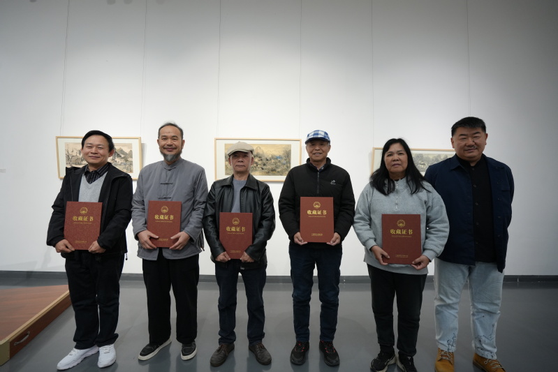 学院行政负责人、广西师范大学美术馆馆长为参展艺术家颁发作品收藏证书