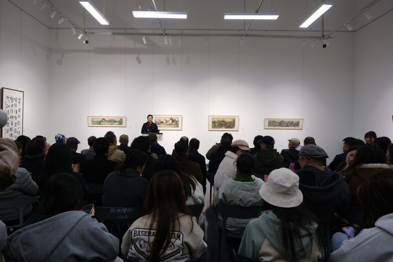 参展艺术家代表在发言中饱含对学校与学院的感恩之情,分享了亲历学院发展的历程。他表示,本次参展的中国画、油画、书法等作品既是向学院建院37周年的献礼,更承载着艺术家们对家国乡土的深情与职业初心。他勉励师生在创作中坚守人民立场,在传承中开拓创新,为文艺事业繁荣注入青春力量。