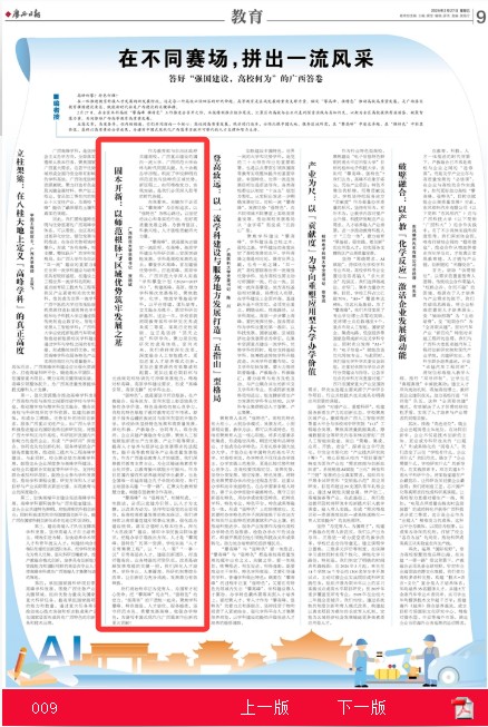 2月27日,在全区本科高校“攀高峰 强特色”工作推进会召开之际,《广西日报》特别推出组合笔谈,汇聚区内高校与企业代表的探索实践与真知灼见,以期为全区高校提供有益借鉴、凝聚智慧力量,共同推动广西高等教育高质量发展。