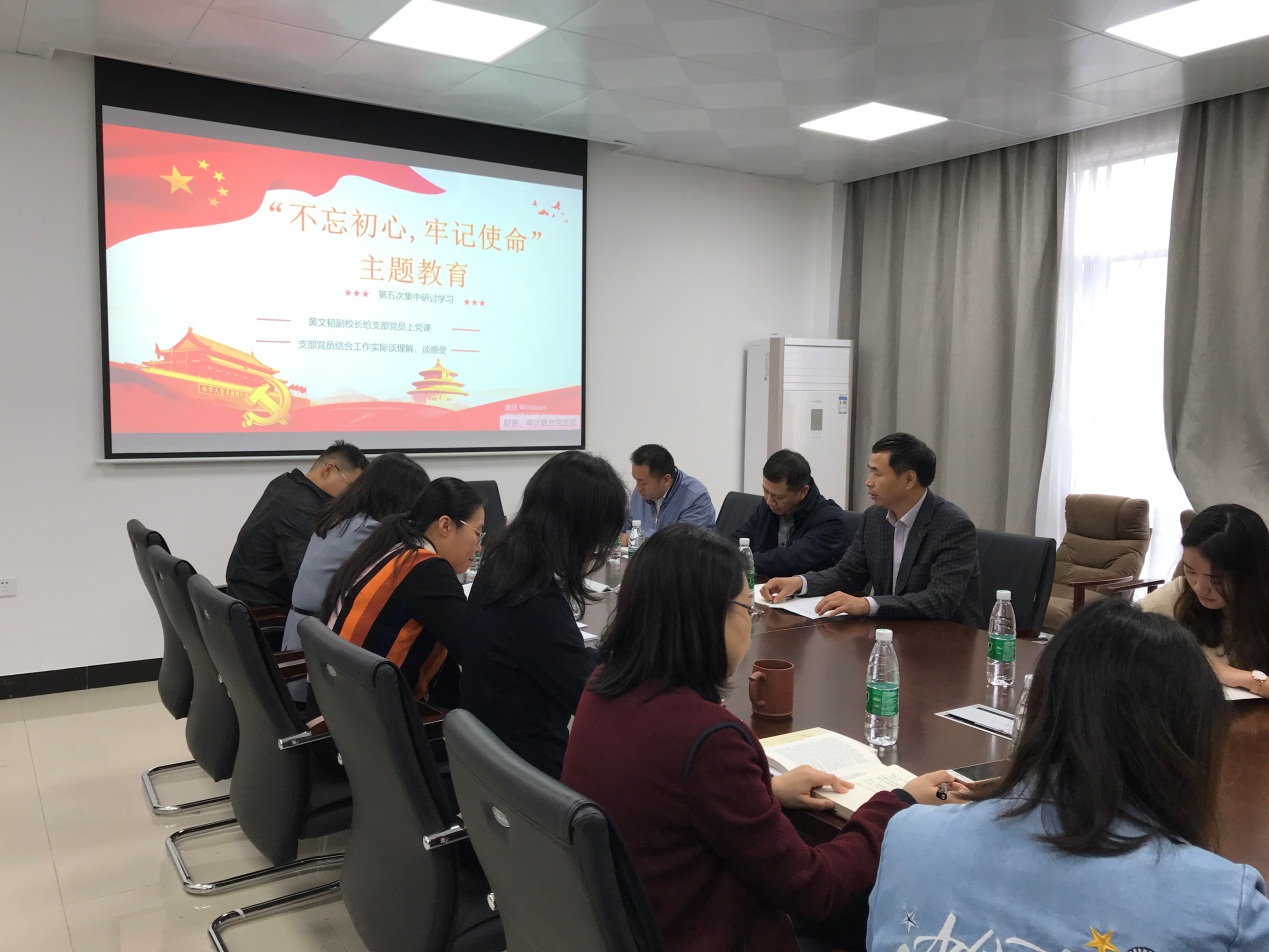 20191023日,财务审计联合党支部在雁山校区召开“不忘初心、牢记使命”主题教育第五次集中学习研讨会,校党委常委、副校长黄文韬参加会议,会议由支部书记主持。