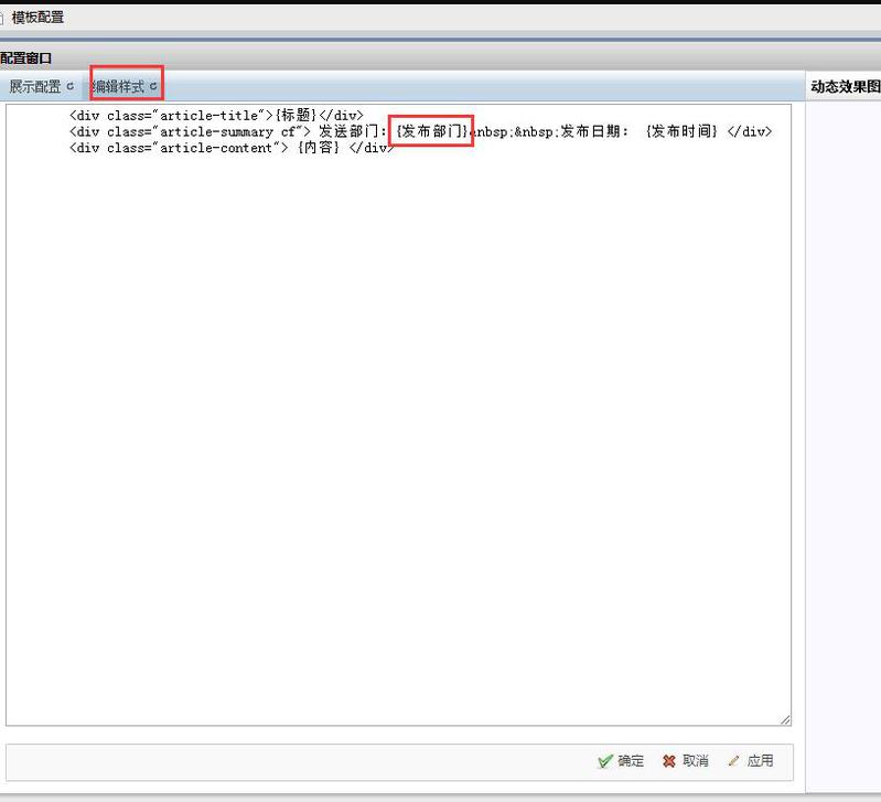 在这里把想要显示的字段,用大括号圈起来,然后可以修改,也可以增加或者删除字段名称就对应文章编辑器下图对应字段