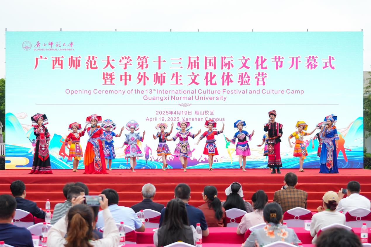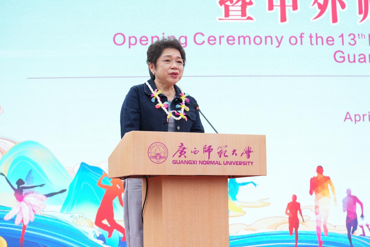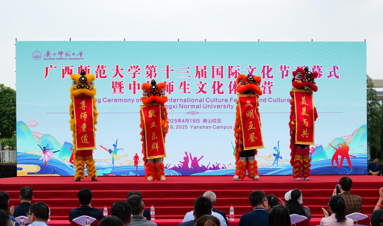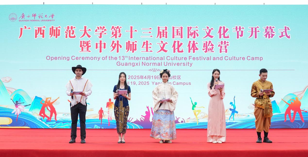为进一步促进中外青年在互学互鉴中增进了解、收获友谊,更好搭建中外文化交流体验平台,营造理解、包容和开放的校园国际化文化氛围,4月19日,广西师范大学第十三届国际文化节开幕式暨中外师生文化体验营活动在雁山校区孔子广场举行。来自全区30所高校的1000多名中外师生齐聚一堂,共同参与了这场盛大的文化交流盛会。广西师范大学校党委常委、副校长李先贤,泰王国驻南宁总领事馆总领事彬嘉玛·塔维她雅浓,缅甸驻南宁总领事馆总领事凯素林,越南驻南宁总领事馆领事范维平,俄罗斯驻广州总领事馆代表林亚赫,广西留管学会理事长覃成强,自治区外事办公室代表,桂林市公安局出入境管理支队代表,桂林市各高校代表,我校乡村振兴定点帮扶的资源县社岭村和猴背村村民代表和学校职能部门代表出席活动。