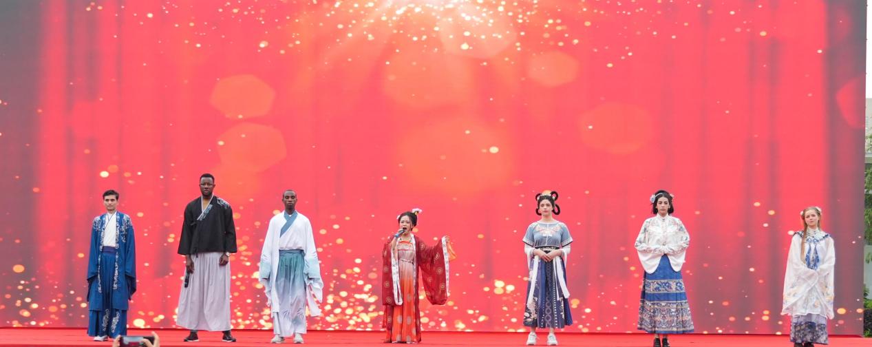 在文艺表演环节,来自不同国家的学生们带来了丰富多彩的文艺表演,包括民族舞蹈、传统音乐、汉服时装秀等,展示了各自国家的独特文化和魅力。现场气氛热烈,掌声不断,观众被这些精彩纷呈的表演深深吸引,纷纷拿出手机记录下这难忘的时刻。