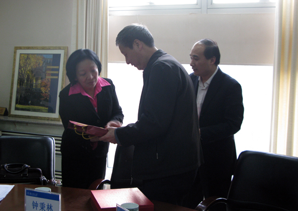 王枬书记向北京师范大学校长钟秉林赠送学校纪念品